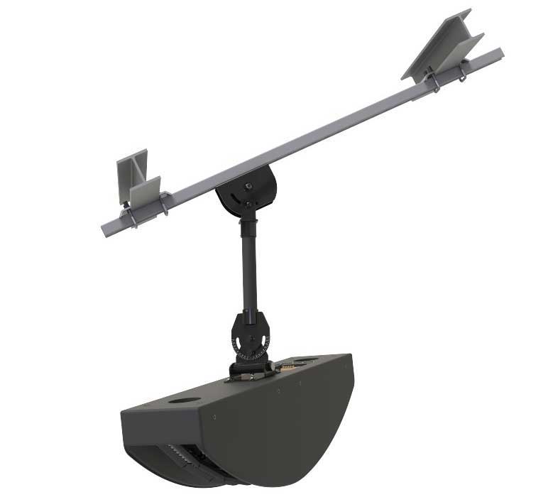 Use Adaptive’s gimballed strut attachment to suspend loudspeakers, video displays and other objects from Unistrut when attached to angled ceiling and roof structures, up to 90 degrees off vertical.