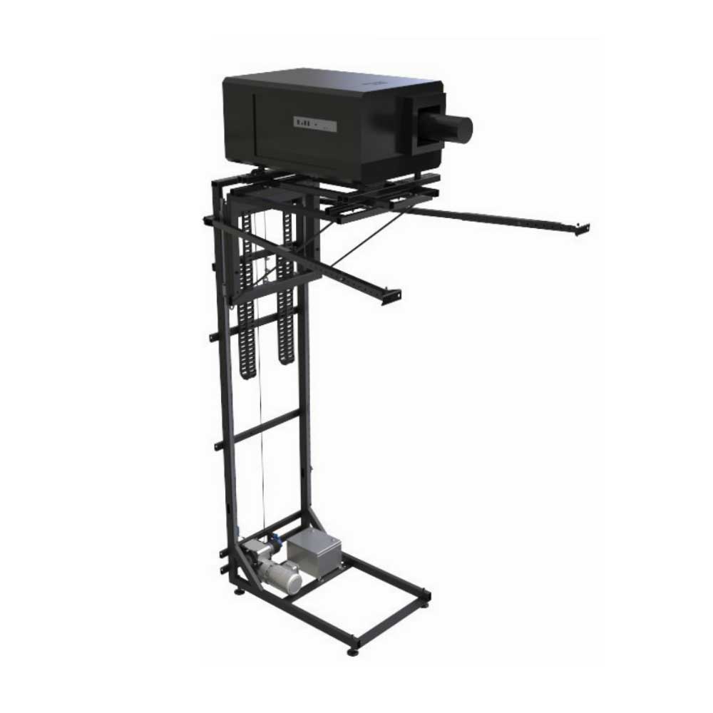 The Wall Mounted Projector Lift lets you install the projector box on the top of the back wall, in the screening room and lower it to its service position. The combination of the Boothless Cinema lift and box allows the installation of a DCI digital projector inside the screening room. You don’t need to build any projection booth, thus dramatically reducing the investment and at the same time increasing the number of seats. Pro-Lift-Wall is professionally engineered, includes a strong and reliable motorization capable of raising your projector between 10’ 2” and 16.75’ depending on the selected model.