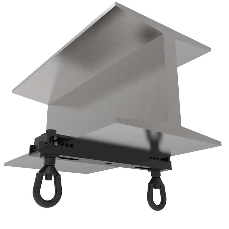 Use the BC7-12-2 channel style beam clamp to provide an offset load rated overhead rigging point from structural I-Beams with flange widths ranging between 7” and 12” (178-305mm). This beam clamp model provides a fast, easy and safe way to rig direct loads, bridles and hitches. A hand wrench is all that is required to secure the clamp to the beam. Beam flanges must be parallel to the floor to achieve the stated safe working loads.