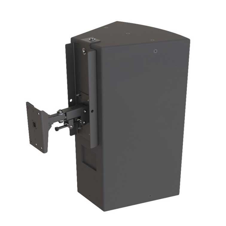 This Adapter, which is powder coated black to match the wall and ceiling mount finish, bolts directly to the speaker’s rigging points and provides four threaded studs to secure the MM-120 and MM-3RDX-120 mounts.