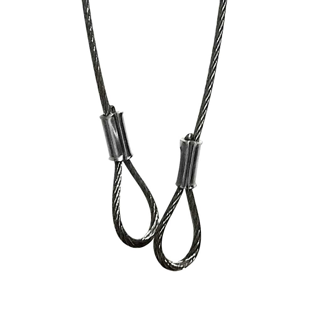 Safety Cable Kits are produced from load-rated aircraft cable and hardware and come in black, zinc and stainless finishes. The proper method for use is to completely bypass the mounted equipment with a safety cable by securing it between the mounted object and a structural member and with as little slack as possible.
