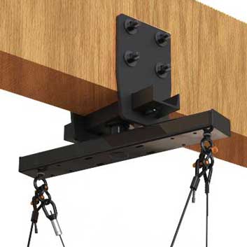 The BC-W7-12-0 provides a safe, secure and versatile overhead rigging point from underneath regular structural wood and Glulam overhead beams. This rugged, all-steel three-piece design will accommodate beam depths of 9” (230 mm) or more and widths from 7 inches wide to 12 inches wide (178-305 mm).